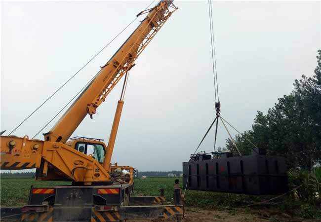 11.檢查基礎(chǔ)是否牢固,確定吊裝距離,根據(jù)生活污水處理設(shè)備的重量和吊裝距離選擇合適噸位的起重機(jī)。