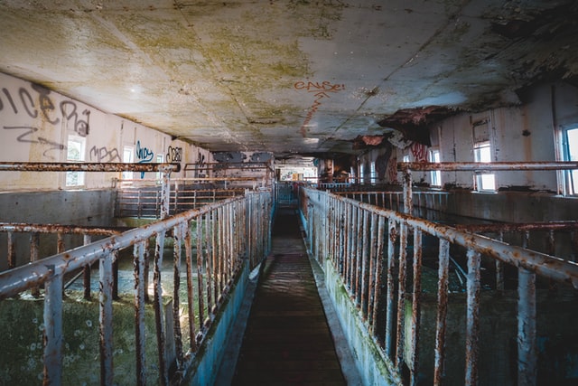 生豬屠宰前在待宰間休息,以使畜體代謝恢復正常,排出積蓄在體內的代謝產物;屠宰前對待宰的活豬進行噴水淋浴以消除豬體表的污物,減少在加工過程中的污染。清洗完畢后首先將豬致暈,致暈過程可減少豬的應激反應,控制pH,提高產品質量。致暈的生豬刺殺后立即用鐵鏈子將豬腿拴住,盡快放血。