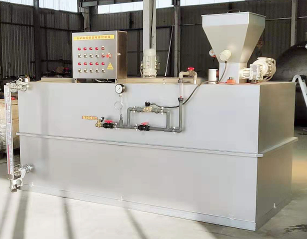 PAM全自動(dòng)加藥裝置主要由支架或操作平臺(tái),溶液箱、儲(chǔ)藥箱,攪拌器、計(jì)量泵、液位計(jì)、電控柜、管路、閥門、脈動(dòng)阻尼器、壓力表、Y型過濾器,安全閥,背壓閥等組成。加藥裝置根據(jù)所需藥劑濃度,在攪拌箱內(nèi)配置,經(jīng)攪拌器攪拌均勻后投入儲(chǔ)液箱、用計(jì)量泵向投藥點(diǎn)或指定系統(tǒng)中輸送所配制的溶液。加藥裝置還可根據(jù)用戶不同工藝流程的要求,進(jìn)行有針對性的設(shè)計(jì)、配置必要的部件,實(shí)現(xiàn)自動(dòng)遠(yuǎn)程控制等功能。